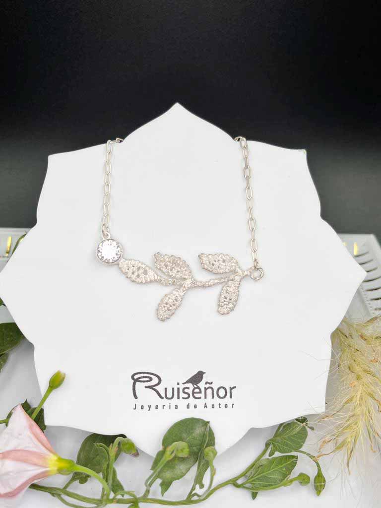 ELIA de origen griego, significa "la que resplandece como el sol". delicadas hojas que se pueden encontrar en esta pieza de joyería del conjunto estos bellos elementos se acomodan perfectamente. La repetición uniforme del motivo romántico de las hojas le da un aspecto lúdico.