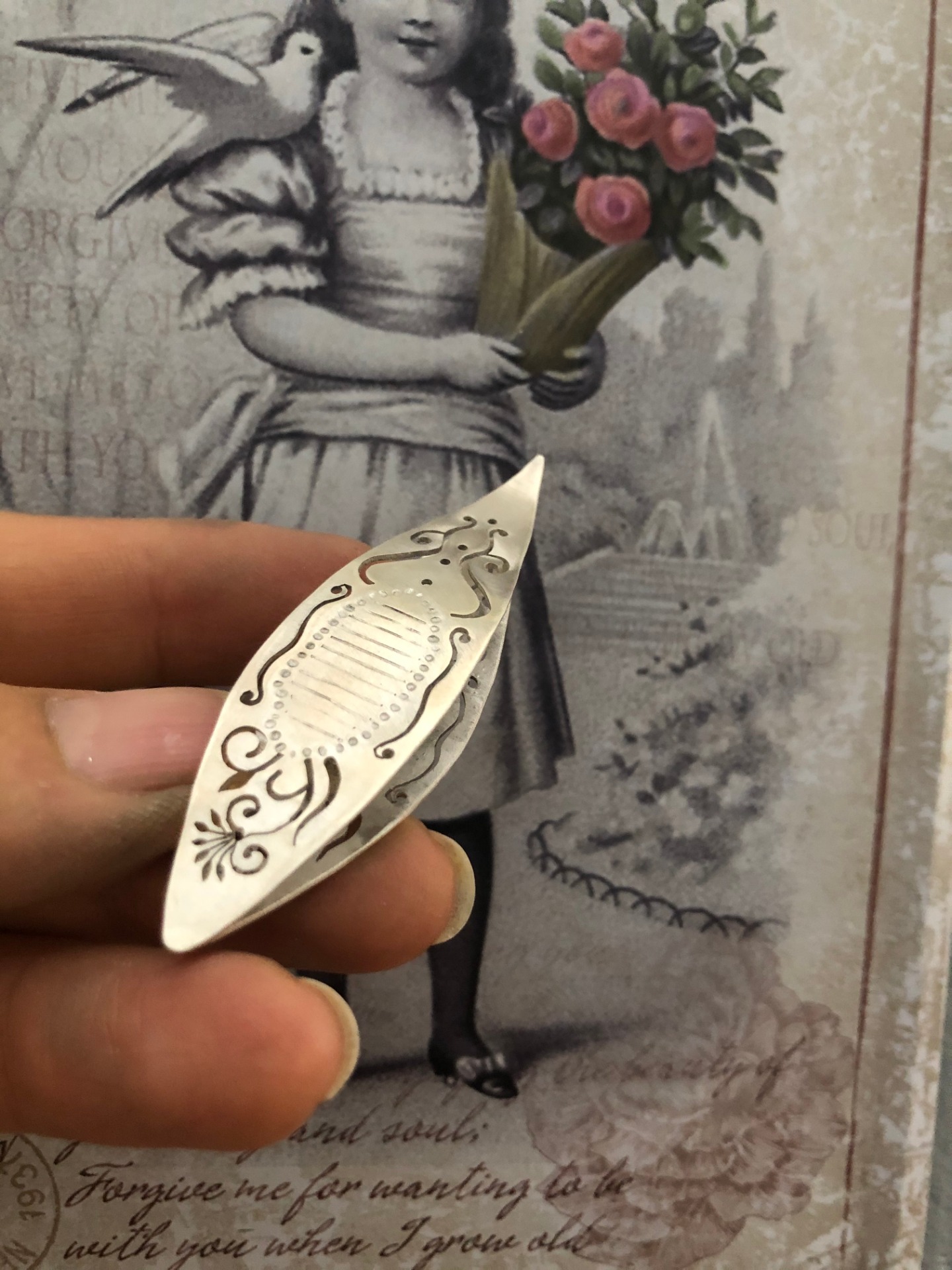 Naveta para tejer frivolité toda en plata 950 muy cómoda para realizar la labor. Diseño personalizado hechura 15 días habiles.